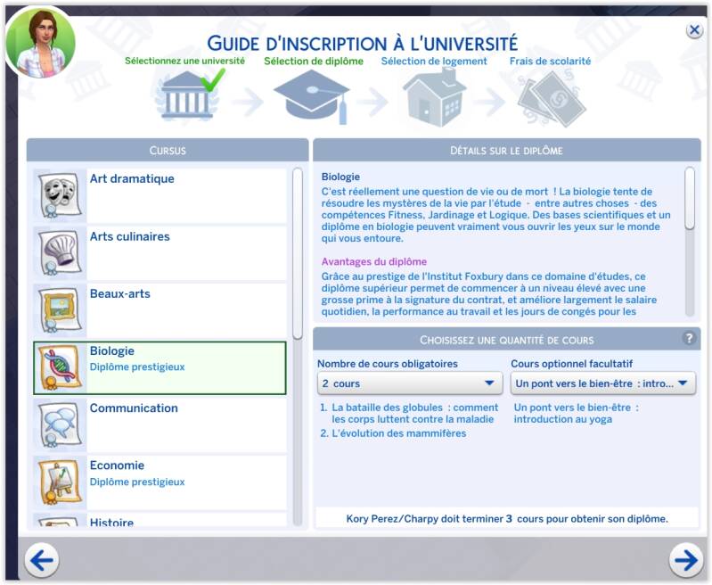 Dans cette pseudo première partie de son voyage, Kory aura presque tout testé de l'université. Les amis, les fêtes, les bourses qui paient tout, les déceptions amoureux et les jeux de séductions. Elle aura aussi pris énormément de poids et en aura perdu tout autant, la cantine était bonne! Elle aura même donné des cours et transmis ses connaissances. Obtenu son diplôme haut la main et même un job bien payé, c'est presque dommage. Peut-être aura-t-elle l'occasion de l'utiliser plus tard.