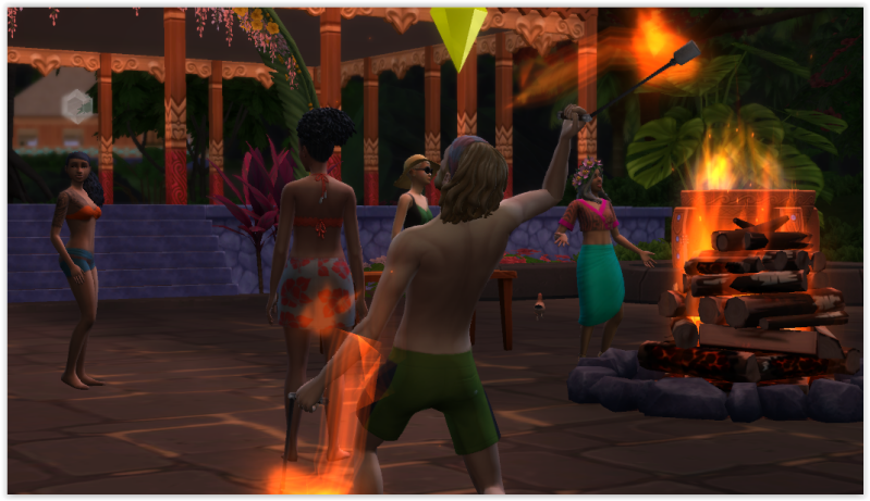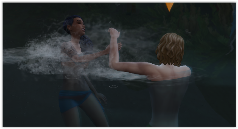 Elle est impressionnée qu'il sache faire la danse du feu. Elle le drague ouvertement.
