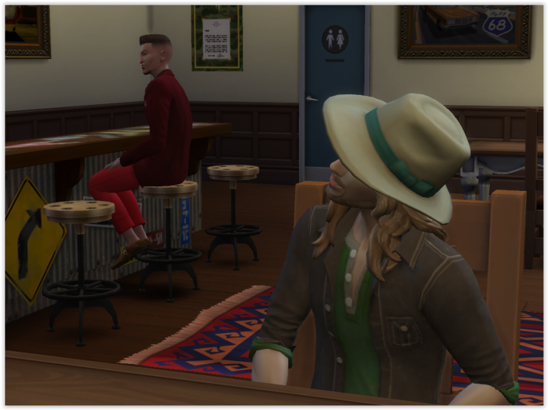Il commande à manger à la serveuse (vous ne rêvez pas, c'est bien Eliza Pancakes qui s'est reconvertie! :D ) Et discute avec elle. Il apprend qu'il est à Strangerville (inconnue au bataillon).