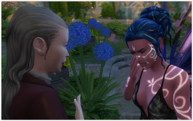 "Ah ça y est, tu es redevenue toi-même? Le nectar a un effet particulier sur les fées mais je n'aurais pas cru qu'il serait aussi puissant sur toi. J'aurais dû te prévenir, moi aussi je te demande pardon..."