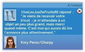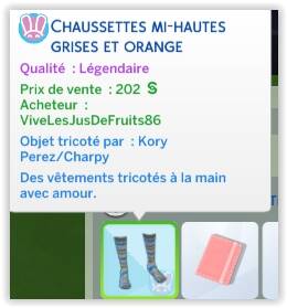 Les jours suivants, Kory arrive enfin à vendre une de ses créations sur Plopsy. Vu qu'elle utilise la laine de feu son lama Chéri, ça ne lui coûte pratiquement rien par contre ça rapporte bien! Mais c'est quand même relativement long.