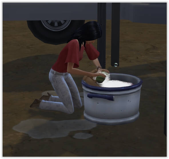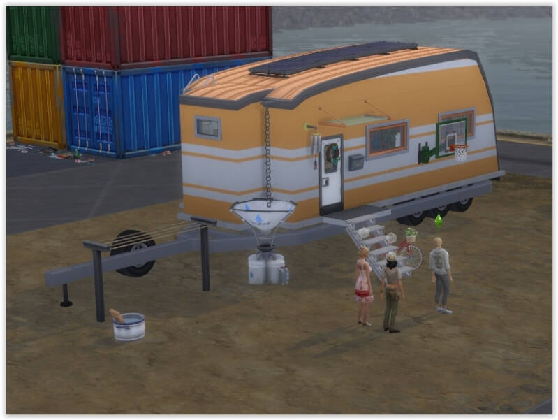 Josefina se lance dans l'amélioration de tout ce qui touche à l'eau ou l'électricité dans la caravane, malgré le récupérateur d'eau et les panneaux solaire, on est toujours en panne de l'un ou de l'autre... (notez que quand j'enregistre la caravane dans la bibliothèque à chaque changement de destination, les améliorations sautent) Elle transforme aussi les wc en composteur.