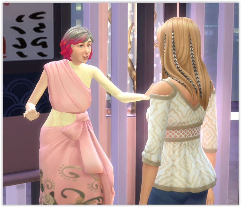 Croiser une star en bas de chez soi, forcément, il faut un selfie! Mais que fait Thorne Bailey encore dans le quartier? Habiterait-il San Myshuno?